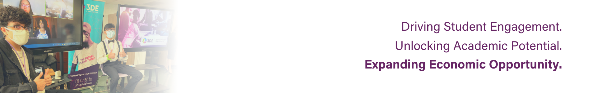 3DE Schools accelerate students’ social and academic growth through immersive learning that builds the knowledge, skills, and confidence needed to thrive. By breaking barriers to opportunity, 3DE empowers students with real-world experiences that increase economic mobility and strengthen the workforce pipeline. The model engages potential, expands boundaries, and delivers measurable impact — positioning 3DE as a powerful solution for the future of our region.